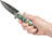 Руків'я зручною форми, прекрасно лежить в руці, має накладки з алюмінію з чорним покриттям, на одній з яких - кольорове зображення ведмедя породи Кодьяк. У складеному вигляді ніж носиться в положенні tip-down на односторонній кліпсі.
